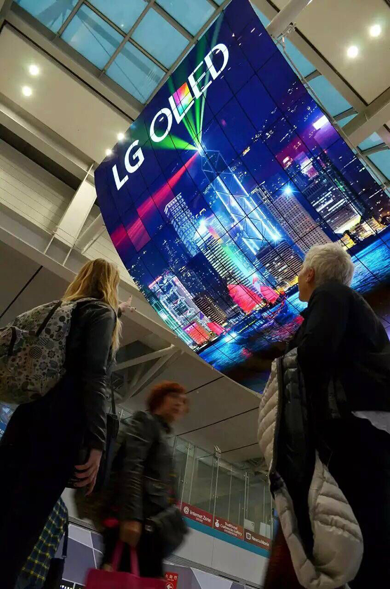 韓國(guó)LG顯示技術(shù)領(lǐng)域在亞洲都名列前茅,其在OLED有機(jī)發(fā)光二極管技術(shù)上更是獨(dú)占鰲頭,為彰顯0LED拼接屏技術(shù)成果,在仁川國(guó)際機(jī)場(chǎng)安裝了一塊10X14共140塊超大超窄的OLED拼接大屏幕,總面積達(dá)104平方米,堪稱(chēng)拼接之最(拼接的最大屏幕)。